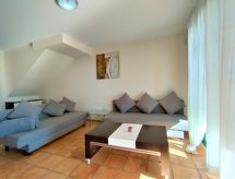 "Mirador II", 3 rom rekkehus 90 m2 på 2 etasjer. Romlig og lys, praktiskt og komfortabelt møbler: stue/spisestue 25 m2 med, 1 sovesoffa, digital TV, flatskjerms TV og air-conditioning. Utgang til sitteplass i hagen. Kjøkken (stekeovn, oppvaskmaskin, 4 keramiske kokeplater, brødrister, vannkoker, mikrobølgeovn, frys, elektrisk kaffemaskin). Sep. WC. Airconditioning. øverste etasje: 1 rom med 2 senger (90 cm lengde 190 cm), air-conditioning. 1 rom med, 1 dobbeltseng (135 cm, lengde 190 cm), bad/bidèt/WC, boblebad og air-conditioning. Dusj/WC. Terrasse, hage 120 m2, plen. Terrassemøbler, liggestoler (2). Utsikt av hagen og landskapet. Fasiliteter: vaskemaskin, strykejern, høy barnestol barneseng for barn opp til 2 år, hårføner. Internett (trådløs LAN [WLAN], gratis). Parkeringsplass ved hbrukt. 1 lite kjæledyr / liten hund tillatt. AT-436616-A For ditt velvære, nyt boblebadet i ferien. Selv om det forblir så varmt om natten, er det fint, du kan skru på klimaanlegget og sove i et hyggelig, temperert inneklima. Huset er også utstyrt med en terrasse. Huset er også utstyrt med barneseng. Huset er også utstyrt med oppvaskmaskin. Et basseng er tilgjengelig. Et barnebasseng er tilgjengelig. Den har en Internett-tilkobling.- Kjennetegn ved boligen
