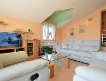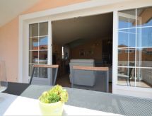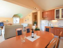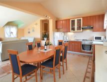 4 rom leilighet 115 m2 i 1st etasje. Vakkert og koseligt møbler: stue/spisestue 42 m2 med, satelit-TV (flatskjerms TV), air-conditioning. Utgang til terrassen. 1 rom med, 1 dobbeltseng (160 cm, lengde 200 cm). 1 rom med, 1 dobbeltseng (160 cm, lengde 200 cm). Utgang til balkongen. 1 rom med 1 seng (100 cm lengde 200 cm). Åpent kjøkken (4 kokeplater, ovn, oppvaskmaskin, mikrobølgeovn, frys, elektrisk kaffemaskin). Bad/dusj/WC. Balkong 4 m2, terrasse 12 m2 delvis dekt. Terrassemøbler. Fasiliteter: Internett (trådløs LAN [WLAN], gratis). Kjæledyr / hund tillatt 1 kjæledyr / hund tillatt.- Kjennetegn ved boligen