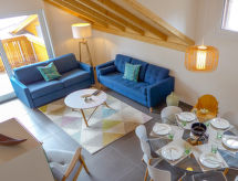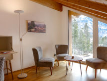 "Momento", 3 rom leilighet 101 m2 på 2 etasjer, i toppetasjen, beliggenhet mot sør. Romlig og lys, meget komfortabelt og smakfullt møbler: åpen stue/spisestue med panoramavindu med, digital TV, stereoanlegg og motoriserte persienner. Utgang til balkongen. 1 rom med, 1 dobbeltseng (180 cm, lengde 200 cm). 1 rom med, 1 dobbeltseng (140 cm, lengde 200 cm). Utgang til balkongen. Åpent kjøkken (ovn, oppvaskmaskin, 4 keramiske kokeplater, frys, elektrisk kaffemaskin, dampgryte, raclettegrill (ost)) med spisebord. Dusj/WC. Varmekabler i gulvet. øverste etasje: (bratt trapp) åpen galleri med skråtak, Lav dørhøyde 120 cm 300 cm med panoramavindu med, 1 dobbeltseng (160 cm, lengde 200 cm). Parkett, naturstengulv. Stor balkong, beliggenhet mot sør. Balkongmøbler. Hærlig panoramautsikt av fjellene og landskapet. Fasiliteter: strykejern, høy barnestol barneseng, hårføner. Internett (trådløs LAN [WLAN], gratis). Parkeringsplass (overdekt, 1 Bil). Vennligst merk: velegnet for familier. Røykfri bolig. Kjæledyr / hund tillatt 1 kjæledyr / hund tillatt. Røykvarsler, brannslukkningsapparat. Ta bare hunden din med deg i stedet for å overlevere den til slektninger eller til kjæledyret pensjonat. Fordi din firbente venn er velkommen her. Huset er også utstyrt med en overbygd parkeringsplass. Den har en tørketrommel.- fasiliteter