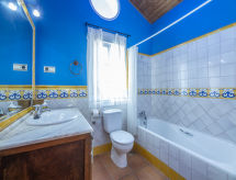 "Montecarlo", 6 rom villa 300 m2 på 3 etasjer, beliggenhet mot sør. Praktiskt og komfortabelt møbler: stue/spisestue med, åpen peis, spisebord, bad/WC, satelit-TV, digital TV, internasjonale TVkanaler og air-conditioning. Utgang til sitteplass i hagen, til badebassenget. Kjøkken (ovn, oppvaskmaskin, 4 keramiske kokeplater, brødrister, mikrobølgeovn, frys, elektrisk kaffemaskin). Sep. WC. øverste etasje: 1 rom med, 1 sovesoffa (90 cm, lengde 190 cm), 1 dobbeltseng (150 cm, lengde 190 cm), bad/bidèt/WC, dobbel servant og boblebad. Utgang til balkongen. 1 rom med 2 senger (90 cm lengde 190 cm), bad/bidèt/WC og dobbel servant (privat). Airconditioning, varmluftsoppvarming. øverste etasje: 1 rom med skråtak med, 1 dobbeltseng (135 cm, lengde 190 cm), 1 uttrekkbar seng (2 pers. 2 x 90 cm, lengde 180 cm). 1 rom med skråtak med 1 seng (90 cm lengde 190 cm), 1 uttrekkbar seng (2 pers. 2 x 90 cm, lengde 190 cm). 1 rom med skråtak med 1 seng og 1 uttrekkbar seng (2 pers.). Utgang til balkongen. Bad/bidé/WC. Airconditioning, varmluftsoppvarming. Toppetasje: med 2 senger (90 cm lengde 190 cm). Sitteplass i hagen. Terrassemøbler, grill, liggestoler. Fasiliteter: vaskemaskin, tørketrommel, strykejern, barneseng, hårføner. Internett (trådløs LAN [WLAN], gratis). Vennligst merk: velegnet for familier. Røykfritt hus. Kjæledyr / hund tillatt 1 kjæledyr / hund tillatt. Brannslukkningsapparat. VFT/MA/01851 Bad i huset. Forbruket av røykere er forbudt. For ditt velvære, nyt boblebadet i ferien. Kom inn og føl deg den forfriskende brisen i klimaanlegget. En veranda er til stede. Den har en brannpit. Huset er også utstyrt med et privat basseng. Den har et trådløst lokalnettverk (WLAN). Det er en tørketrommel. Et bordtennisbord er tilgjengelig.- fasiliteter