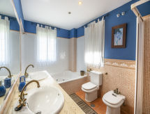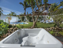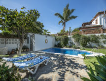 Fin, koselig hus "Montecarlo", med 3 etasjer. I området 800 m fra sentrum av San Pedro de Alcantara, 3 km fra sentrum av Puerto Banus, 8 km fra sentrum av Marbella, i en roligt posisjon boligområde, 400 m fra sjøen, 400 m fra stranden, beliggenhet mot sør. Privat: tomt 600 m2 (inngjerdet), vakker hage for avslappning, svømmebasseng inngjerdet (8 x 4 m, dybde 130- 250 cm dyp, Sesongåpent: 01.Jan. - 31.Des.). Dusj/WC ved bassenget, boblebad, bassenghus, bordtennis, sitteplass, grill. I hbrukt: trådløst LAN [WLAN], airconditioning, vaskemaskin. Offentlig parkering på veien. Supermarked 500 m, kjøpesenter 3 km, restaurant 50 m, bar 150 m, bakeri 300 m, café 150 m, område bare for gående, ølservering 300 m, sandstrand 400 m. Golfbane(18 hull) 2 km. Vennligst merk: eieren bor på same tomt. Stille og rolig område. Stillhet og god oppførsel.Interior