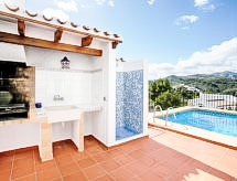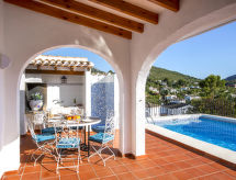 Monte Pego: Koselig, meget komfortabel villa "Moreana". I en roligt posisjon på toppen av en høyde, boligområde, område med lite trafikk, 7 km fra sjøen. Privat: naturlig hage 600 m2, svømmebasseng (4 x 8 m, dybde 90- 200 cm dyp, Sesongåpent: 01.Jan. - 31.Des.). Terrasse (25 m2), hagemøbler, grillhus, parkering (for 2 biler). Vennligst merk: bil anbefales. Eieren godtar ikke noen ungdomsgrupper. Surfing eller ikke surfing er ikke et spørsmål her. Du må bare prøve det. På stedet, muligheten til å gjøre det.Interior