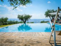 "Moriaolo", 5 rom hus 500 m2 på 2 etasjer. Rustikt og smakfullt møbler: stue med, åpen peis, TV, CD-spiller og stereoanlegg. Utgang til terrassen. 1 rom med 1 seng og dusj/WC. Åpent kjøkken (ovn, oppvaskmaskin, 5 gassbrennere, brødrister, vannkoker, mikrobølgeovn, frys, elektrisk kaffemaskin) med spisebord. Utgang til hagen. øverste etasje: 4 dobbelt rom, hvert rom med, dusj/WC. Åpen galleri med skråtak, Lav dørhøyde 100 cm 170 cm med 2 senger. Kjøkken (ovn, oppvaskmaskin, 5 gassbrennere, brødrister, vannkoker, mikrobølgeovn, frys, elektrisk kaffemaskin) med spisebord, TV og flatskjerms TV. Utgang til hagen. Gassoppvarming, airconditioning. Terrasse dekt. Terrassemøbler, grill. Fasiliteter: vaskemaskin, strykejern, myggnett. Internett (trådløs LAN [WLAN], gratis). Parkeringsplass. Vennligst merk: røykfritt hus. Nyt dusjet og lukter du kan slappe av på ferien programmet, fordi en dusj er tilgjengelig. Gjør krav på de utestående kulinariske ferdighetene til din egen kokk. Med sin egen boblebad., Dra nytte av boblebadet. Den har oppvaskmaskin. En brannpit er tilgjengelig. Det er et basseng. Huset er også utstyrt med et privat basseng.- fasiliteter