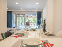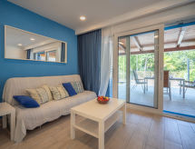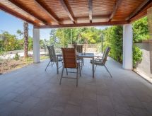 3 rom hus 85 m2, beliggenhet mot sør. Koseligt møbler: stue/spisestue 25 m2 med, TV (flatskjerms TV), air-conditioning. Utgang til terrassen. 1 rom 10 m2 med, 1 dobbeltseng (160 cm, lengde 200 cm). 1 rom 10 m2 med, 1 dobbeltseng (140 cm, lengde 200 cm). Åpent kjøkken (oppvaskmaskin, 4 keramiske kokeplater, vannkoker, mikrobølgeovn, frys, elektrisk kaffemaskin). Utgang til terrassen. Dusj/WC. Gulvvarme (ekstra). Terrasse 45 m2 delvis dekt, terrasse 40 m2. Terrassemøbler. Delvis utsikt av havet. Fasiliteter: hårføner. Internett (trådløs LAN [WLAN], gratis). Kjæledyr / hund tillatt 1 kjæledyr / hund tillatt. Er en vanlig dusjritual fast forankret i den daglige rutinen? Vi kan gjøre det fordi en dusj er tilgjengelig. Med inngjerdet tomt. Selv om det forblir så varmt om natten, er det fint, du kan skru på klimaanlegget og sove i et hyggelig, temperert inneklima. Det er en parkeringsplass. En internettforbindelse er tilgjengelig. Et trådløst LAN (trådløst lokalnettverk) er tilgjengelig.- fasiliteter