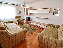 9 rom halvpart av tomannsbolig 225 m2 på 3 etasjer, beliggenhet mot sør. Stue 15 m2 med, satelit-TV. 1 rom med, 1 dobbeltseng (2 x 90 cm, lengde 190 cm). Utgang til balkongen. 1 rom med, 1 dobbeltseng (2 x 90 cm, lengde 190 cm). Spisestue. Åpent kjøkken (2 kokeplater, oppvaskmaskin, frys). Bad/WC. I underetasje: (utendørs trapp) stue 15 m2 med, satelit-TV. 1 rom med, 1 dobbeltseng (180 cm, lengde 200 cm). 1 rom med, 1 dobbeltseng (180 cm, lengde 200 cm). Spisestue. Åpent kjøkken (2 kokeplater, oppvaskmaskin, frys). Bad/WC. øverste etasje: (utendørs trapp) stue 15 m2 med, satelit-TV. 2 rom, hvert rom med, 1 dobbeltseng (2 x 90 cm, lengde 190 cm). Utgang til balkongen. Spisestue. Åpent kjøkken (2 kokeplater, oppvaskmaskin, frys). Dusj/WC. Balkong 10 m2, balkong 4 m2, 3 terrasser 10 m2, dekt, terrasse 26 m2. Terrassemøbler, liggestoler. Fasiliteter: Internett (trådløs LAN [WLAN], gratis). Egnet for grilling. Huset er også utstyrt med internettforbindelse. Et trådløst lokalnettverk (WLAN) er tilgjengelig.- Aktiviteter i nærheten
