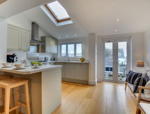 Padstow 10 km fra Wadebridge: Komfortabel rekkehus "Nether Terrace". I en roligt, solrikt posisjon, 650 m fra sjøen, 1 km fra stranden. Privat: hage. Sitteplass, hagemøbler, offentlig parkering på veien. Butikk, daglivarehandel, restaurant, bar 500 m, bussholdeplass 200 m, togstasjon "Bodmin Parkway" 30 km, sandstrand "Harlyn Bay" 5 km. Sporthavn 2 km, golfbane(18 hull) 7 km. Attraksjoner i nærheten: Goss Moor Natural Reserve, Owl Sanctuary 23 km, Eden Project 34 km, Newquay (harbour, aquarium, golf, zoo) 25 km, Trevose Heritage Coast and Golf Club 7 km, Tintagel Castle 33 km, Polperro Heritage Coast 40 km.Interior