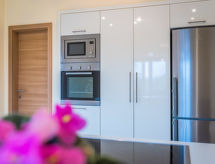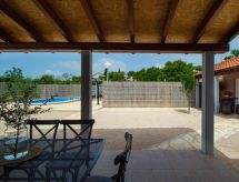 4 rom hus 160 m2, beliggenhet mot sør. Stue/spisestue 35 m2 med, satelit-TV (flatskjerms TV), air-conditioning. Utgang til terrassen. 1 rom med, 1 dobbeltseng (160 cm, lengde 200 cm), satelit-TV (flatskjerms TV). 1 rom med, 1 dobbeltseng (160 cm, lengde 200 cm), TV (flatskjerms TV). 1 rom med Garderobe med 1 seng (80 cm lengde 190 cm), 1 dobbeltseng (180 cm, lengde 200 cm). Kjøkken (ovn, oppvaskmaskin, 4 keramiske kokeplater, vannkoker, mikrobølgeovn, frys, elektrisk kaffemaskin). Utgang til terrassen. Bad/WC, sep. WC. Terrasse 10 m2, dekt, terrasse 15 m2, med tak. Terrassemøbler, liggestoler (6). Utsikt av svømmebassenget. Fasiliteter: strykejern, høy barnestol barneseng, hårføner. Internett (trådløs LAN [WLAN], gratis). Bad i huset. Klimaanlegget sørger for god romtemperatur. Fordi den følelsesvennlige faktoren spiller en viktig rolle og er viktig for oss. Huset er også utstyrt med et basseng. Det er et privat basseng. Finn ut om det eksisterende TV-apparatet. Om lokale nyheter eller internasjonale nyheter, med fjernsynet er du alltid godt informert. Det er en mikrobølgeovn tilgjengelig.- fasiliteter
