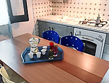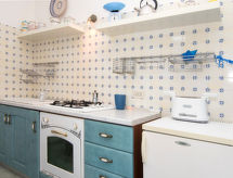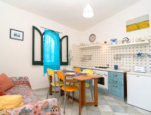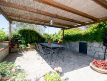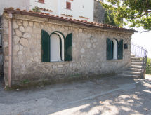 3 rom rekkehus 35 m2, på bakkeplan. Renovert i 2022, enkelt og komfortabelt møbler: stue/spisestue med, spisebord og kjøkkenhjørne. Utgang til terrassen. 1 rom med, 1 dobbeltseng (140 cm). 1 rom med 2 senger. Kjøkkenkrok (4 kokeplater, ovn). Dusj/bidé/WC. Gassoppvarming (ekstra). Oppvarming kun tilgjengelig fra 01.11. til 31.03. Sitteplass i hagen 10 m2. Balkongmøbler. Vakker panoramautsikt av havet. Fasiliteter: vaskemaskin. Internett (trådløs LAN [WLAN], gratis). Parkeringsplass ved hbrukt. Vennligst merk: velegnet for familier. Parkeringsplass bare for små biler. Huset er også utstyrt med parkeringsplass. Det er en overbygd parkeringsplass.- fasiliteter