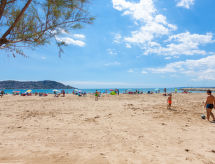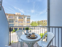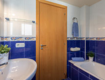 3 rom leilighet 56 m2 i 1st etasje. Praktiskt og komfortabelt møbler: stue/spisestue med, digital TV. Utgang til terrassen. 1 rom med, 1 dobbeltseng. 1 rom med 2 senger. Åpent kjøkken (4 kokeplater, stekeovn, mikrobølgeovn). Bad/bidé/WC. Oppvarmingsalternativ. Terrasse 6 m2. Terrassemøbler. Fasiliteter: vaskemaskin. Parkeringsplass plass nr 2. 2,3X4,20. Vennligst merk: bare TV ES, FR, DE. HUTG004957 Et badekar er tilgjengelig.- fasiliteter