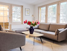 3 rom leilighet 88 m2 i 3rd etasje, beliggenhet mot sør. Meget komfortabelt og stilfullt møbler: stue/spisestue med, spisebord og kabel-TV. Utgang til balkongen. 1 dobblet rom med, 1 dobbeltseng og bad/WC. 1 dobblet rom med 2 senger. Åpent kjøkken (4 kokeplater, ovn, oppvaskmaskin, brødrister, vannkoker, mikrobølgeovn, frys, elektrisk kaffemaskin, raclettegrill (ost)). Dusj/WC. Balkong, beliggenhet mot sør. Balkongmøbler. Meget vakker panoramautsikt av fjellene. Fasiliteter: hårføner. Internett (trådløs LAN [WLAN], gratis). Vennligst merk: røykfri bolig. Objekt med heis.- Kjennetegn ved boligen