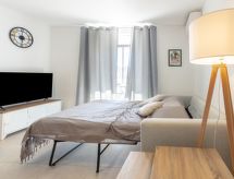 1 rom etromsleilighet 40 m2 i 2nd etasje. Vakkert og moderne møbler: stue/spisestue med, 1 sovesoffa (140 cm, lengde 190 cm), TV (flatskjerms TV). Utgang til loggiaen. Sovealkove med, 1 dobbeltseng (140 cm, lengde 190 cm). Åpent kjøkken sammen med ingangen (stekeovn, oppvaskmaskin, 2 induksjonskomfyr, brødrister, vannkoker, mikrobølgeovn, frys, elektrisk kaffemaskin, Internet(MAGIMIX), ekstra). Dusj/WC. Airconditioning, vannkoker (100 liter). Balkongmøbler, overbygd balkong. Utsikt av havet. Fasiliteter: strykejern, hårføner. Internett (trådløs LAN [WLAN]). Parkeringsplass plass nr 20 (overdekt, inngjerdet, 1 Bil). Vennligst merk: røykvarsler. Tilbud fra en privatperson i henhold til art. 155, IV av CGI. 83048001113F6 Gir spektakulær utsikt over havet. Selv om det forblir så varmt om natten, er det fint, du kan skru på klimaanlegget og sove i et hyggelig, temperert inneklima. Det er en balkong. Den har en overbygd parkeringsplass. Det er en internettforbindelse.- Kjennetegn ved boligen