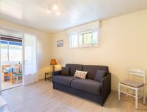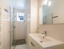 2 rom leilighet 44 m2, på bakkeplan. Passer for 4 voksne. Lys, praktiskt og komfortabelt møbler: stue med panoramavindu med, 1 dobbel sovesoffa (140 cm, lengde 190 cm), TV (flatskjerms TV). Utgang til verandraen. 1 rom med, 1 dobbeltseng (140 cm, lengde 190 cm). Utgang til terrassen. Kjøkken 14 m2 (ovn, 2 gassbrennere, brødrister, vannkoker, mikrobølgeovn, elektrisk kaffemaskin, Internet(Dolce Gusto)) med spisebord. Dusj, sep. WC. El-oppvarming. Liten hage. Terrassemøbler. Fasiliteter: vaskemaskin, strykejern, hårføner. Internett (trådløs LAN [WLAN], gratis). Parkeringsplass. Vennligst merk: røykvarsler. 64189000659E5 Spesielt etter en begivenhetsrik ferie hjelper et kortdusjbad med å oppdatere. En ekte glede takket være den tilgjengelige dusjen. En terrasse er tilgjengelig. Det er en barneseng.- fasiliteter