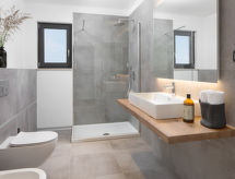 Moderne villa "Oliva", med 4 etasjer, bygget i 2017. I det lille tettstedet Križine 4 km fra sentrum av Umag, i en roligt, solrikt posisjon, 200 m fra sjøen, 200 m fra stranden. Fellesbruk: tomt 2'000 m2 (inngjerdet), vakker hage med plen og planter. Privat: tomt 200 m2 (inngjerdet), 2 badebasseng kantete, oppvarmt (8 x 4 m, dybde 140 cm, Sesongåpent: 01.Jan. - 31.Des.) med innebygde trapper. Utendørs dusj, lekeplass (rutsjebane, huske). I hbrukt: internetilkobbling, biljard, fotballsbord, sentralvarme, vaskemaskin, tørketrommel. Parkering (for 4 biler) ved hbrukt på tomten. Butikk 300 m, supermarked 3 km, restaurant 300 m, småstenstrand, strand ved klipper 200 m. Golfbane 10 km, tennis 4 km, rideskole 5 km, turstier fra hbrukt 100 m, sykkelvei 150 m. Grupper av tenåringer er ikke tillatt. Enheten består av 2 hus som er leid som en enhet. Svømmebasseng oppvarmt (ekstra). Umag er det perfekte reisemål for de som ser etter den spesielle seilopplevelsen.Interior
