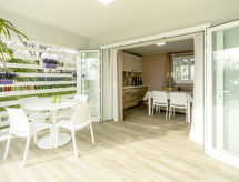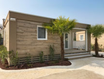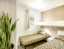 3 rom campingvogn 43 m2. Vakkert møbler: stue/soverom med, 1 sovesoffa, spisebord, satelit-TV, elektrisk oppvarming og air-conditioning. Utgang til terrassen. 1 rom med, 1 dobbeltseng (140 cm). 1 rom med 2 senger. Åpent kjøkken (4 kokeplater, mikrobølgeovn, frys, elektrisk kaffemaskin). Dusj/WC. Parkett. Terrasse dekt. Terrassemøbler. Fasiliteter: safe, høy barnestol. Internett (trådløs LAN [WLAN], ekstra). Parkeringsplass (1 Bil). Vennligst merk: røykfri bolig. Max kjæledyr / hund tillatt 1 kjæledyr / hund tillatt. Egen inngang. Ingen obligatoriske ekstrakostnader skal betales på stedet bortsett fra lokal skatt. 017102-RTA-00004 To-leggede og firbente venner på ferie er mulig her, fordi alle er velkommen her. Husdyr er tillatt. For nyttig informasjon vennligst spør resepsjonen. Ønsker du ikke alltid å lage deg selv på ferie? Unn deg et besøk til den vedlagte restauranten. Halvpensjon er en del av en helt bekymringsfri ferie. Bestillingen av frokost er mulig her når som helst. Den har et barnebasseng. Den har et bordtennisbord.- fasiliteter