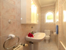 "Oronella", 4 rom hus 162 m2 på 2 etasjer. Romlig og lys, komfortabelt og vakkert møbler: stue/spisestue med, satelit-TV, air-conditioning og varmluft oppvarming. Utgang til verandraen. 2 rom, hvert rom med, 1 dobbeltseng (1 x 150 cm, lengde 190 cm), air-conditioning og varmluft oppvarming. Åpent kjøkken (4 kokeplater, stekeovn, oppvaskmaskin, brødrister, vannkoker, mikrobølgeovn, frys, elektrisk kaffemaskin). Bad/WC, dusj/WC. I underetasje: (utendørs trapp), 1 rom med, 1 dobbeltseng (1 x 150 cm, lengde 190 cm), dusj/WC, air-conditioning og varmluft oppvarming. Utgang til sitteplass i hagen, til badebassenget. Terrassemøbler, liggestoler (4). Fasiliteter: vaskemaskin, strykejern, hårføner. Parkeringsplass (overdekt, 1 Bil). Vennligst merk: et dobbeltrom ligger utenfor leiligheten. Røykfritt hus. Ingen innvendig dør mellom etasjene. R000000001 For å holde det kult om sommeren, har dette feriehuset aircondition. En overbygd parkering er tilgjengelig. Huset er også utstyrt med et privat basseng.- Kjennetegn ved boligen
