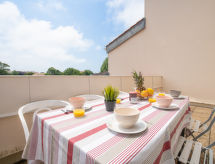 3 rom leilighet i to etasjer 84 m2 i 5th etasje, beliggenhet mot sør. Romlig, komfortabelt og vakkert møbler: stue/spisestue med, 1 dobbel sovesoffa (120 cm, lengde 190 cm). Utgang til terrassen, beliggenhet mot sør. Kjøkken (4 kokeplater, ovn, oppvaskmaskin, mikrobølgeovn, frys). Sep. WC. øverste etasje: 2 rom, hvert rom med 2 senger (90 cm lengde 190 cm). Bad/WC. Stor terrasse 15 m2, beliggenhet mot sør. Terrassemøbler. Fasiliteter: vaskemaskin. Internett (trådløs LAN [WLAN], gratis). Parkeringsplass plass nr 3. Vennligst merk: røykfri bolig. Røykvarsler. 64122001732B0 Du kan ta heisen til gulvet i leiligheten. Den har en baby seng. Det er en mikrobølgeovn tilgjengelig. En ovn er tilgjengelig.- fasiliteter