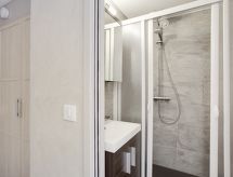 1 rom etromsleilighet 14 m2 i 3rd etasje. Renovert: stue/spisestue med, 1 uttrekkbar seng (2 pers. 2 x 80 cm, lengde 190 cm), TV (flatskjerms TV). Åpent kjøkken (2 kokeplater, mikrobølgeovn, elektrisk kaffemaskin). Dusj/WC. Beliggenhet mot nord. Vennligst merk: røykfri bolig. Røykvarsler. Residence. Røyking er mot husregler. Overnatting med vedlagt restaurant. Objekt med heis.- Kjennetegn ved boligen