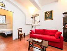 "Pantheon", 2 rom leilighet 50 m2, i forhøyet bunnetasje. Delvis renovert i 2016, komfortabelt og antikt møbler: inngang. Stue/spisestue 20 m2 med, 1 dobbel sovesoffa, spisebord og TV (flatskjerms TV). 1 dobblet rom med, dusj/bidèt/WC. Kjøkkenkrok (2 kokeplater, mikrobølgeovn). Oppvarming. Oppvarming kun tilgjengelig fra 21.11. til 30.03. Fasiliteter: vaskemaskin, barneseng for barn opp til 2 år, hårføner. Internett (trådløs LAN [WLAN], gratis). Vennligst merk: egen inngang. Residence. Fersk sengetøy tilgjengelig. Ved rengjøring.- Kjennetegn ved boligen