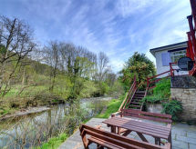 4 rom hytte. Delvis, med skråtak, praktiskt møbler: stue/spisestue med, åpen peis og TV (flatskjerms TV), CD-spiller og DVD. Utgang til balkongen. 1 rom med, 1 dobbeltseng, vaskeservant og separat WC. 1 rom med 1 seng og 1 dobbeltseng. Kjøkken (4 kokeplater, ovn). Bad/dusj/WC. Oppvarming. Liten balkong, sitteplass i hagen, hage. Drivhus. Utsikt av elven. Fasiliteter: vaskemaskin. Internett (trådløs LAN [WLAN], gratis). Vennligst merk: ikke egnet for barn under 8 år. Røykfritt hus. Den har en balkong. En veranda er til stede. Den har en DVD-spiller.- Kjennetegn ved boligen