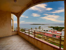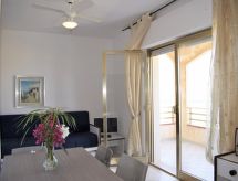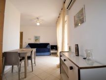 2 rom leilighet 40 m2. Enkelt og praktiskt møbler: stue/spisestue med, 1 sovesoffa, 1 uttrekkbar seng og TV (flatskjerms TV), air-conditioning. Utgang til terrassen. 1 dobblet rom med, vifte. Kjøkkenkrok (4 kokeplater, frys). Dusj/bidé/WC. Vannkoker (50 liter). Terrasse 5 m2, dekt. Balkongmøbler. Utsikt av havet. Fasiliteter: hårføner. Internett (trådløs LAN [WLAN], gratis). Ta kontakt med oss når du kommer til resepsjonen. Utsikt over havet og beliggenheten er nydelig. Det er en terrasse. Hvis været ikke spiller, er det også en TV.- Kjennetegn ved boligen