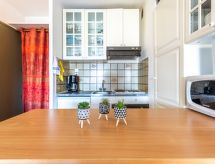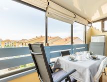 2 rom leilighet 28 m2 i 3rd etasje. Stue/spisestue med, 1 sovesoffa (140 cm, lengde 190 cm), TV (flatskjerms TV). Utgang til loggiaen. Alkove med, 1 x 2 køysenger (90 cm, lengde 190 cm). 1 rom med, 1 dobbeltseng (1 x 140 cm, lengde 190 cm). Kjøkkenkrok (3 kokeplater, ovn, oppvaskmaskin, brødrister, vannkoker, mikrobølgeovn, elektrisk kaffemaskin). Bad/WC. Ved siden utsikt av havet og vannet. Fasiliteter: vaskemaskin, tørketrommel. Internett (trådløs LAN [WLAN], ekstra). Parkeringsplass. Vennligst merk: røykvarsler. Tilbud fra en privatperson i henhold til art. 155, IV av CGI. Residence. Parkering er tilgjengelig. Huset er også utstyrt med et trådløst lokalnettverk (WLAN). En tørketrommel er tilgjengelig.- Kjennetegn ved boligen