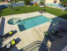 8 rom hus 280 m2 på 2 etasjer. Stue/spisestue med, satelit-TV (flatskjerms TV), air-conditioning. Utgang til terrassen. Biljardrom 50 m2 med, satelit-TV (flatskjerms TV), air-conditioning. Utgang til hagen, til badebassenget. Åpent kjøkken (4 kokeplater, ovn, oppvaskmaskin, mikrobølgeovn, frys, elektrisk kaffemaskin). 2 dusjer/WC. øverste etasje: inngang med, air-conditioning. 1 rom med, 1 dobbeltseng (180 cm, lengde 200 cm). 1 rom med, 1 dobbeltseng (180 cm, lengde 200 cm). Utgang til terrassen. 1 rom med, 1 dobbel sovesoffa (140 cm, lengde 200 cm), TV (flatskjerms TV). Utgang til terrassen. Inngang med, air-conditioning. 1 rom med, 1 dobbeltseng (160 cm, lengde 200 cm). 1 rom med 2 senger (90 cm lengde 200 cm). Utgang til terrassen. 1 rom med, 1 dobbeltseng (180 cm, lengde 200 cm). Utgang til terrassen. Bad/bidé/WC, dusj/WC. Terrasse 15 m2, dekt, 2 terrasser 8 m2. Terrassemøbler, grill (flyttbar), liggestoler. Utsikt av svømmebassenget og hagen. Fasiliteter: safe, høy barnestol barneseng, hårføner. Internett (trådløs LAN [WLAN], gratis). Kjæledyr / hund tillatt 1 kjæledyr / hund tillatt. Selv hennes hund er her en velkommen gjest, tross alt tilhører han familien. Det har en badstue. Et basseng er tilgjengelig. Huset er også utstyrt med et privat basseng. Det har et oppvarmet basseng. Huset er også utstyrt med biljardbord.- Kjennetegn ved boligen
