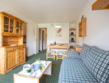 1 rom leilighet 28 m2 i 8th etasje, beliggenhet mot sør. Enkelt og praktiskt møbler: stue/spisestue med, 1 uttrekkbar seng (2 pers. 2 x 80 cm, lengde 190 cm), TV (flatskjerms TV). Utgang til balkongen, beliggenhet mot sør. Sovealkove med, 1 x 2 køysenger (80 cm, lengde 190 cm). Kjøkkenkrok (2 kokeplater, ovn, brødrister, vannkoker, mikrobølgeovn, elektrisk kaffemaskin). Bad, sep. WC. El-oppvarming. Teppe. Balkong 4 m2, beliggenhet mot sør. Balkongmøbler. Utsikt av skibakkene. Fasiliteter: hårføner. Internett (trådløs LAN [WLAN], ekstra). Vennligst merk: max kjæledyr / hund tillatt 1 kjæledyr / hund tillatt. Røykvarsler. Et badekar er tilgjengelig. Praktisk med heisen til inngangsdøren. Det er et oppvarmet basseng.- fasiliteter