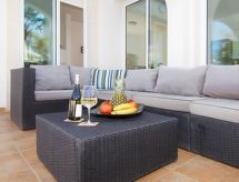 Moderne villa "PEORA40". Husutstyr: airconditioning, vaske maskin (privat bruk). Tillgang & Parkering privat parkering. Kjøreavstand til huset. Situasjon: i sentrum Avtalevilkar Pernera. Utsikt from leilighet of hagen. Området rundt huset: grounds (privat bruk), svømmebasseng (privat bruk, lengde 8 m x bredde 4 m), utendørs shower (privat bruk). Facilities and distances: butikk 500 m, restaurant 800 m, sand strand 900 m.Interior
