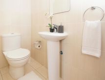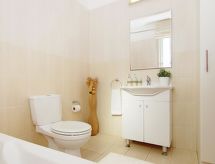4-rom hus, frakoblet, for 6 mennesker, 120 m2, moderne møbler. Stue/spise rom med lokal TV, satelit-TV og DVD. Røyking ikke tillatt. Internett (Wireless LAN [WLAN]). Sove rom med 2 enkel seng. Sove rom med 2 enkel seng. Sove rom med 1 dobbel seng. Kjøkken med 4 varme plater, mikro wave, oven, spise bord, oppvaskmaskin, fridge og dyp fryser. Bad-rom og separate WC. Terrasse, uteplass, terrasse møbler. Annet utstyr: safe, hårføner, strykejern, vaskemaskin. 1 family bathroom with bath tub and toilet. All bathrooms have washing basins. Standard Arrival Time: after 16:00 pm. Standard Departure Time: until 11:00 am. En terrasse er tilgjengelig. En oppvaskmaskin er tilgjengelig. Den har en DVD-spiller.- Kjennetegn ved boligen