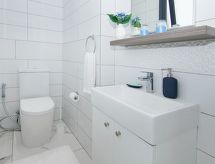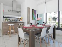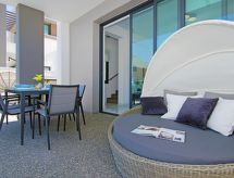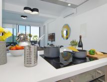 4-rom hus, frakoblet, for 6 mennesker, 120 m2, moderne møbler. Stue/spise rom med lokal TV og satelit-TV. Røyking ikke tillatt. Internett (Wireless LAN [WLAN]). Sove rom med 1 dobbel seng. Sove rom med 2 enkel seng. Sove rom med 1 dobbel seng. Kjøkken-/stue rom med 4 varme plater, mikro wave, oven, spise bord, oppvaskmaskin, fridge og dyp fryser. Shower, shower/WC og separate WC. Balkong, uteplass, terrasse møbler. Annet utstyr: safe, hårføner, strykejern, vaskemaskin. 1 guest toilet. 1 bathroom with toilet and shower room. 1 en-suite bathroom with toilet and shower room. All bathrooms have with washing basins. Den har en veranda.- Kjennetegn ved boligen