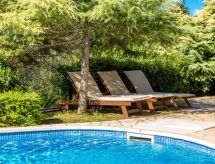 Fin leilighetshus. I området Banjol 200 m fra sentrum av Rab, i en roligt, solrikt posisjon, 200 m fra sjøen, 500 m fra stranden, i en blindvei. Fellesbruk: tomt (inngjerdet), velholdt hage med plen, 1 badebasseng oppvarmt (8 x 4 m, dybde 120- 160 cm dyp, Sesongåpent: 13.Mai. - 30.Sep.) med innbygdetrapper. Utendørs dusj, hagemøbler, grill. I hbrukt: internetilkobbling. Overdekket, parkering ved hbrukt på tomten. Butikk 100 m, restaurant 30 m, sandstrand, småstenstrand 700 m, strand ved klipper, offentlig badeområde, betonglagt strand 500 m. Vennligst merk: Bildet er et eksempel. Det er flere lignende leiligheter i samme hus. Objektnummer HR3700.314 ligger på samme tomt. The apartment house "Petra" is situated on the same grounds (700 m2) with the apartment house "Ivana", with elliptic shaped swimming pool for shared use, with counterflow. Deck chairs at disposal.Interior