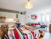 4 rom hus 85 m2. Praktiskt møbler: stue/spisestue med, TV (flatskjerms TV). Utgang til terrassen. 1 rom med, 1 dobbeltseng. 1 rom med, 1 dobbeltseng, vaskeservant og separat WC. 1 rom med 2 senger. Åpent kjøkken (4 kokeplater, ovn, oppvaskmaskin, mikrobølgeovn). Bad, sep. WC. El-oppvarming. Terrasse 30 m2, beliggenhet mot sør terrasse 20 m2, østvendt beliggenhet. Terrassemøbler, grill. Fasiliteter: vaskemaskin, høy barnestol barneseng. Internett (trådløs LAN [WLAN], ekstra). Vennligst merk: røykvarsler. Access to the room with double bed, wash basin and WC via a separate entrance. Bad i huset.- fasiliteter
