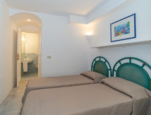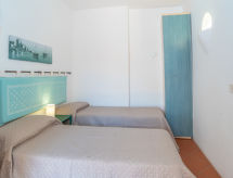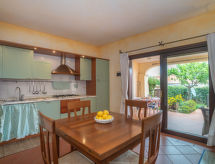 "Pino", 4 rom leilighet 75 m2 på 2 etasjer, på bakkeplan. Praktiskt møbler: stue/spisestue med, spisebord, satelit-TV og air-conditioning. Utgang til terrassen. 1 dobblet rom med, air-conditioning. Utgang til verandraen. 1 rom med 2 senger og air-conditioning. Utgang til verandraen. Åpent kjøkken (ovn, oppvaskmaskin, 5 gassbrennere, brødrister, mikrobølgeovn, frys). Dusj/bidé/WC. Airconditioning (ekstra). I underetasje: (utendørs trapp), 1 rom med 2 senger. Terrasse 12 m2, dekt. Terrassemøbler, grill, liggestoler (1), lager. Fasiliteter: vaskemaskin, safe, strykejern, barneseng (ekstra). Vennligst merk: et dobbeltrom ligger utenfor leiligheten. Røykfri bolig. Max kjæledyr / hund tillatt 1 kjæledyr / hund tillatt. Egen inngang. Forbruket av røykere er forbudt. Eiendommen er helt inngjerdet. Det er et barnebasseng. Det er en komfyr.- Kjennetegn ved boligen
