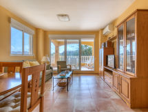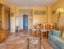 "Playasol II", 3 rom leilighet 70 m2. Enkelt og vakkert møbler: stue/spisestue med, digital TV, air-conditioning og varmluft oppvarming. Utgang til terrassen. 1 rom med, 1 dobbeltseng (160 cm, lengde 190 cm), bad/bidèt/WC, air-conditioning og varmluft oppvarming. 1 rom med 2 senger (90 cm lengde 180 cm). Kjøkken (ovn, 4 keramiske kokeplater, mikrobølgeovn, frys, elektrisk kaffemaskin). Dusj/WC. Stor terrasse 20 m2. Terrassemøbler. Fasiliteter: vaskemaskin, strykejern, høy barnestol barneseng, hårføner. Internett (trådløs LAN [WLAN], gratis). Parkeringsplass plass nr 15. Vennligst merk: kjæledyr / hund tillatt 1 kjæledyr / hund tillatt. Bare TV ES. R0000000001 Husdyr er tillatt. Dermed kan hund og eier eller eier sammen tilbringe den beste tiden på året. En parkeringsplass er tilgjengelig. Huset er også utstyrt med et barnebasseng. Takket være vaskemaskinen finner du mindre klær å bære.- Kjennetegn ved boligen