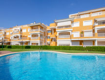 Fin, komfortabel leilighetshus "Playasol II". I området 1.2 km fra sentrum av Dénia, i en roligt, solrikt posisjon, 240 m fra sjøen, 240 m fra stranden. Fellesbruk: tomt (inngjerdet) med plen og trær, 1 badebasseng (20 x 10 m, dybde 110- 220 cm dyp, Sesongåpent: 01.Jan. - 31.Des.). Barnebasseng, utendørs dusj, parkering nr 15. Supermarked 210 m, restaurant 20 m, café 200 m, sandstrand 260 m. Sporthavn 1.4 km, marina 1.4 km, tennis 350 m. Grupper med tenåringer- bare ved forespørsel. Stille og rolig område. Stillhet og god oppførsel. Fans av ballsporter som tennis vil finne en rekke muligheter på den eksisterende tennisbanen.Interior