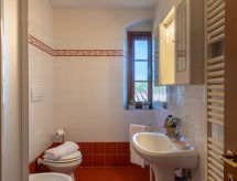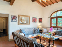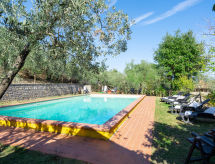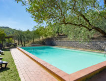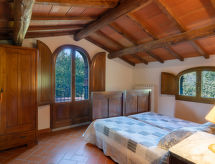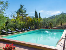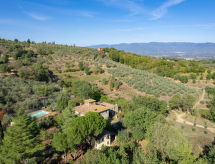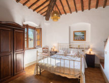 "Poggio Cuccule", 15 rom hus 410 m2 på 2 etasjer. Vakkert og antikt møbler: inngang. Utgang til loggiaen. 4 dusjer/bidéer/WC. øverste etasje: liten salong med, åpen peis og satelit-TV. 1 dobblet rom. 1 dobblet rom med, åpen peis. 2 dobbelt rom, hvert rom med, dusj/bidèt/WC. 1 rom med 2 senger. Kjøkken (5 kokeplater, ovn, oppvaskmaskin, mikrobølgeovn, frys) med spisebord. 2 dusjer/bidéer/WC. Panoramautsikt av landskapet. Fasiliteter: vaskemaskin. Internett (trådløs LAN [WLAN], gratis). Kjæledyr/små hunder tillatt 2 kjæledyr/små hunder tillatt. On the ground floor there is access to a large room (32 m2) whre an arch separate the billiard room from the living room. From one of the bedroom there is access (1.2 m in height) to a loft room with ratan lounge. In one of the bedroom it is possible to add an extra bed (single) which is charged locally. The first annex, 100 m2, on 2 floors consists of a double bedroom and a dining/kitchen on the ground floor with access to a covered patio (50 m2 with outdoor furniture). Shower/bidet/WC. 1st floor: 1 double bedroom. 1 twin bedroom. Shower/bidet/WC. the second annex, 100 m2, consists of large, sunny living room, kitchen, 1 doubl bedroom ans 1 shower/bidet/WC on the ground floor. 1 double and 1 twin bedroom, shower/bidet/WC on the 1st floor. Both kitchens are adeguate for self-catering. gazebo with furniture next to the swimming pool. Please note, there are 8 showers/bidets/WC in total at the property. Spesielt etter en begivenhetsrik ferie hjelper et kortdusjbad med å oppdatere. En ekte glede takket være den tilgjengelige dusjen. Ikke bare er kjæledyr tillatt her, men deres hund er også en velkommen gjest. I hagen vår tilbyr du god plass til avslapning og rekreasjon. En oppvaskmaskin er tilgjengelig. Det er en brannkasse. Et privat basseng er tilgjengelig. Ved rengjøring. Den har et biljardbord. Den har et bordtennisbord. En mikrobølgeovn er også tilgjengelig.- fasiliteter