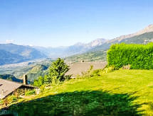 "Praline", 4 rom hytte 100 m2 på 2 etasjer. Enkelt møbler: stue/spisestue med, åpen peis, kabel-TV og flatskjerms TV. Utgang til terrassen, beliggenhet mot sør. Lite kjøkken (4 kokeplater, ovn, oppvaskmaskin, brødrister, vannkoker, mikrobølgeovn, elektrisk kaffemaskin, raclettegrill (ost)). Sep. WC. El-oppvarming. øverste etasje: 1 rom med skråtak med, 1 dobbeltseng (160 cm, lengde 200 cm). Utgang til balkongen, beliggenhet mot sør. 1 rom med skråtak med, 2 dobbeltsenger (2 x 90 cm, lengde 200 cm). Utgang til balkongen, beliggenhet mot sør. 1 rom med skråtak med, 1 dobbeltseng (140 cm, lengde 190 cm). Bad/bidé/WC. Parkett. Stor terrasse, beliggenhet mot sør, plen 130 m2. Terrassemøbler, grill, liggestoler (2), lager. Hærlig panoramautsikt av fjellene og dalen. Fasiliteter: vaskemaskin, barneseng for barn opp til 3 år, hårføner. Internett (trådløs LAN [WLAN], gratis). Garasje plass nr 7, høyde 200 cm, bredde 230 cm. Vennligst merk: røykfri bolig. Kjæledyr / hund tillatt 1 kjæledyr / hund tillatt. En barneseng er tilgjengelig. Den har en overbygd parkeringsplass. Finn ut om det eksisterende TV-apparatet. Om lokale nyheter eller internasjonale nyheter, med fjernsynet er du alltid godt informert. En vaskemaskin er tilgjengelig for bruk.- fasiliteter