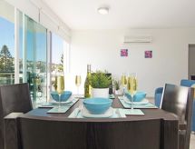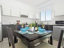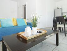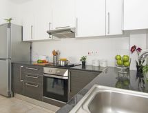2-rom leilighet for 2 mennesker, 55 m2, moderne møbler. Stue/spise rom med lokal TV og DVD. Røyking ikke tillatt. Internett (Wireless LAN [WLAN]). 1 soffa seng. Sove rom med 1 dobbel seng. Kjøkken med 4 varme plater, mikro wave, oven, spise bord, oppvaskmaskin og fridge. Bad-rom og shower/WC. Balkong, terrasse møbler. Annet utstyr: safe, hårføner, strykejern, vaskemaskin. En oppvaskmaskin er tilgjengelig. En overbygd parkering er tilgjengelig.- Kjennetegn ved boligen
