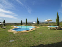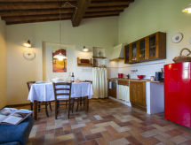 Landbrukseiendommer "Corte in Poggio", omgitt av vingårder. 9 leiligheter i residensen. 6.5 km fra sentrum av Cerreto Guidi, 12 km fra sentrum av Vinci, 45 km fra sentrum av Firenze, i en solrikt posisjon på toppen av en høyde, i det grønne. Fellesbruk: tomt 110'000 m2 med trær, eng, 1 badebasseng (14 x 7 m, dybde 140- 170 cm dyp, Sesongåpent: 01.Mai. - 05.Okt.). Barnebasseng, utendørs dusj, boblebad, bordtennis, boccia, volleyball bane, terrasse, hagemøbler, grill, lekeplass. I hbrukt: vaskemaskin (for felles bruk ekstra), oppvarming betales lokalt, oppvarming kun tilgjengelig fra 01.11. til 15.04., tilgjengelige sykler. Parkering på tomten. Butikk 1 km, supermarked 6.5 km, sandstrand "Marina di Pisa" 65 km, termalbad "Montecatini Terme" 16 km. Attraksjoner i nærheten: San Miniato 15 km, Carmignano 27 km, Lucca 36 km, San Casciano Val di Pesa 46 km, Pisa 56 km, San Gimignano 57 km. Vennligst merk: velegnet for barnefamilier. Salg av lokale gårdsprodukter. Eieren bor på same tomt.Interior