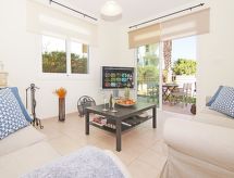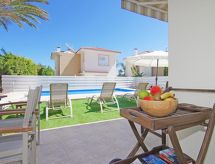 4-rom hus, frakoblet, for 6 mennesker, 140 m2, komfortabelt møbler. Stue/spise rom med lokal TV, satelit-TV, DVD og spise-bord. Røyking ikke tillatt. Internett (Wireless LAN [WLAN]). Sove rom med 1 dobbel seng. Sove rom med 1 dobbel seng. Sove rom med 2 enkel seng. Kjøkken med 4 varme plater, mikro wave, oven, spise bord, oppvaskmaskin, fridge og dyp fryser. Bad-rom, shower/WC og separate WC. Balkong, terrasse, uteplass, terrasse møbler. Annet utstyr: safe, høy barnestol hårføner, strykejern, vaskemaskin. 1 guest toilet. 1 family bathroom with bath tub. All bathrooms have with washing basins. Eieren forbyr røyking i bygningen. Selv om det forblir så varmt om natten, er det fint, du kan skru på klimaanlegget og sove i et hyggelig, temperert inneklima. Huset er også utstyrt med veranda. En barneseng er tilgjengelig. En DVD-spiller er tilgjengelig.- Kjennetegn ved boligen