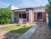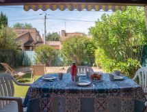 3 rom rekkehus 63 m2, på bakkeplan. Komfortabelt og vakkert møbler: stue/spisestue med, TV (flatskjerms TV). Utgang til terrassen, til sitteplass i hagen. 1 rom med, 1 dobbeltseng (140 cm, lengde 200 cm). Utgang til terrassen. 1 rom med 2 senger (90 cm lengde 190 cm). Kjøkken (miniovn, 4 keramiske kokeplater, brødrister, mikrobølgeovn, frys, elektrisk kaffemaskin). Dusj, sep. WC. El-oppvarming. Terrasse 15 m2, sitteplass i hagen 25 m2. Terrassemøbler, elektrisk grill, liggestoler (2). Fasiliteter: Internett (trådløs LAN [WLAN], ekstra). Vennligst merk: bare TV FR. Røykvarsler. Tilbud fra en privatperson i henhold til art. 155, IV av CGI. 83112000746PI En veranda er til stede.- Kjennetegn ved boligen