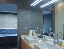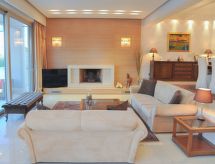 Moderne, fin villa "Queen", med 3 etasjer, frittstående. I området Ialyssos, i en roligt, solrikt posisjon, 80 m fra sjøen, 80 m fra stranden. Privat: vakker, velholdt hage med blomster og trær, plen med solningsområde, svømmebasseng kantete (18 m2, dybde 130 cm, Sesongåpent: 01.Apr. - 30.Nov.). Parkering ved hbrukt. Daglivarehandel, supermarked, restaurant, bar, bakeri, café 500 m, småstenstrand "Ialyssos" 80 m. Golfbane(18 hull) 17.6 km, rideskole 4.5 km. Attraksjoner i nærheten: Valley of the Butterflies 17.8 km, Lindos Acropolis 48.8 km, Asklipio Castle 61.4 km, Palace of the Grand Master of Knights 10.5 km, Medieval City of Rhodes 8.4 km, Waterpark Rhodes 14.4 km. Vennligst merk: bil anbefales. Velegnet for barnefamilier, babyutstyr på forespørsel (inkl.). Grupper med tenåringer- bare ved forespørsel. Golfere pass opp! Her kan du snu runden din i en koselig og sosial atmosfære.Interior