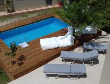 "Queen", 5 rom villa 330 m2 på 3 etasjer. Romlig og lys, komfortabelt og vakkert møbler: åpen stue/soverom med, 1 sovesoffa, åpen peis og satelit-TV (flatskjerms TV). Utgang til hagen, til badebassenget. Åpent kjøkken (stekeovn, oppvaskmaskin, 4 keramiske kokeplater, brødrister, vannkoker, mikrobølgeovn, elektrisk kaffemaskin) med liten spisebord. Dusj/WC. Airconditioning. øverste etasje: (trapp uten gelender), 1 dobblet rom med, 1 dobbeltseng. Utgang til balkongen. 2 dobbelt rom, hvert rom med 2 senger. Utgang til balkongen. Bad/WC. Airconditioning. øverste etasje: (trapp uten gelender), 1 dobblet rom med, 1 dobbeltseng og dusj/WC. Utgang til balkongen. Airconditioning. 3 store balkonger. Grill. Vakker utsikt av havet. Fasiliteter: vaskemaskin, safe, hårføner. Internett (trådløs LAN [WLAN], gratis). 00001072889 For din velvære, nyt boblebadet i ferier. Kom inn og føl deg den forfriskende brisen i klimaanlegget. Det er en oppvaskmaskin. Det er en brannkasse. Det er et privat basseng.- Aktiviteter i nærheten