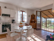 "Querceto", 3 rom hus 60 m2 på 2 etasjer. Lys, koseligt møbler: 1 rom med, 1 dobbeltseng (160 cm). Kjøkken/stue (stekeovn, oppvaskmaskin, Gasskomfyr, 4 gassbrennere, frys, elektrisk kaffemaskin) med spisebord, vedovn. Utgang til terrassen. Dusj/bidé/WC. øverste etasje: 1 rom med 1 seng, 1 sovesoffa og satelit-TV. Utgang til balkongen. Vedoppvarming. Oppvarming er ikke tilgjengelig på alle rom. Liten balkong, terrasse delvis. Terrassemøbler, grill, liggestoler. Meget vakker panoramautsikt av landskapet. Fasiliteter: vaskemaskin. Internett (trådløs LAN [WLAN], gratis). Vennligst merk: røykfri bolig. Max kjæledyr/små hunder tillatt 2 kjæledyr/små hunder tillatt. Hagen vår venter på deg for en dukkert i avslapning. Egnet for grilling. En ovn er tilgjengelig.- fasiliteter