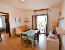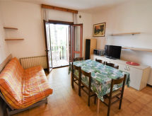 Liten, komfortabel flermannsbolig "Residence Giardino", med 2 etasjer. Lignano Sabbiadoro, i en roligt, solrikt posisjon, område med lite trafikk, 1.1 km fra sjøen, 1.1 km fra stranden, beliggenhet mot sør. Fellesbruk: stor hage (inngjerdet) med planter og trær, 1 badebasseng (20 x 12 m, dybde 160- 160 cm dyp, Sesongåpent: 01.Jun. - 31.Aug. bassengets åpningstider: 09:00-13:00 og 16:00-19:00). Dusj/WC ved bassenget, barnebasseng, parkering ved hbrukt, offentlig parkering på veien. Supermarked 1 km, restaurant, bar, café 500 m, sandstrand 1.1 km. Vennligst merk: ingen heis.Interior