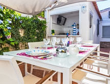 Fin, komfortabel hus "Reynaud". I området Pení, 1 km fra sentrum av Empuriabrava, i en roligt, solrikt posisjon boligområde, område med lite trafikk, 1.5 km fra sjøen, 180 m fra kanalen, beliggenhet mot sør-vest. Privat: svømmebasseng kantete (4 x 7 m, Sesongåpent: 01.Apr. - 30.Okt.). Terrasse, hagemøbler, grill, grillhus, parkering, offentlig parkering på veien. Daglivarehandel, supermarked 300 m, kjøpesenter 2 km, restaurant 300 m, bar 200 m, bussholdeplass 2 km, sandstrand "Empuriabrava" 1.5 km. Sporthavn 1.7 km, golfbane 12 km, tennis 2 km, minigolf 750 m, rideskole 3 km. Attraksjoner i nærheten: Centro Aerodromo y túnel del viento 1 km, Parque Acuático Roses 10 km, Casino y festival de Perelada 12 km, Museo Dalí de Figueres 15 km, Ruïnes de Sant Martí de Empuries 21 km, Monasterio de Sant Pere de Rodes 23 km. Grupper med tenåringer- bare ved forespørsel. Surfer venner pass opp, den lokale kysten har ideelle forhold for surfing. Enten profesjonell eller amatør, ikke nøl med og trene avrundingen på den nærliggende golfbanen. Et vakkert miljø for turer og en vennlig atmosfære venter ryttere elskere. hva vil du ha mer som en hest eller rytter? Det er tennisbaner tilgjengelig. Så tennisentusiaster kan trene på alle nivåer.Interior