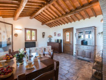 Fin, rustikk villa "Ricali", omgitt av trær og jorder. Eiendom bestående av hovedhus og uthus 4 km fra sentrum av Porto Santo Stefano, 15 km fra sentrum av Orbetello, i en avskildt posisjon ved en høyde, 2.1 km fra sjøen. Privat: tomt 12'000 m2 (inngjerdet), velholdt hage i flere nivåer med plen og planter, svømmebasseng (12 x 4 m, dybde 140- 220 cm dyp, Sesongåpent: 15.Apr. - 15.Okt.). Formet basseng. Utendørs dusj, lysthus, terrasse, hagemøbler, grillhus, Underholdning av bassenget av eieren/gartneren. I hbrukt: bordtennis, fotballsbord. Smal Tilgang med bil hele veien. Parkering på tomten. Butikk 4 km, togstasjon "Orbetello" 17 km, ferje "Civitavecchia" 85 km, sandstrand "Giannella" 12 km småstenstrand "Cala di Gesso" 2.1 km. Golfbane(18 hull) 15 km, turstier fra hbrukt 850 m. Attraksjoner i nærheten: Giardino dei Tarocchi 35 km, Capalbio 37 km, Grosseto 52 km. Turstier Mountain-Bike 2 km. Å bruke de beste dagene på året på en seilbåt er et annet alternativ. Sportig utforske naturen og nyt dagen på et seilskip. Et populært surfemål med forfriskende bølger. Surfene er glade for å være her.Interior