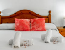 "Rinconada Real", 3 rom bungalow 97 m2 på 2 etasjer. Passer for 4 voksne. Romlig og lys, enkelt og praktiskt møbler: stue/spisestue 15 m2 med, digital TV og air-conditioning. Utgang til terrassen. Kjøkken 6 m2 (stekeovn, 4 keramiske kokeplater, brødrister, vannkoker, mikrobølgeovn, frys, elektrisk kaffemaskin). Sep. WC. Airconditioning. øverste etasje: 1 rom 7 m2 med 2 senger (90 cm lengde 190 cm), air-conditioning. 1 rom 15 m2 med, 1 dobbeltseng (150 cm, lengde 190 cm), air-conditioning. Dusj/WC. Stor terrasse 28 m2. Terrassemøbler. Utsikt av svømmebassenget og hagen. Fasiliteter: vaskemaskin, strykejern, høy barnestol barneseng for barn opp til 2 år, hårføner. Internett (trådløs LAN [WLAN], gratis). VT-323589-BM Med inngjerdet tomt. Kom inn og føl deg den forfriskende brisen i klimaanlegget. Det er en barneseng. Et barnebasseng er tilgjengelig. Huset er også utstyrt med en ovn.- fasiliteter
