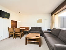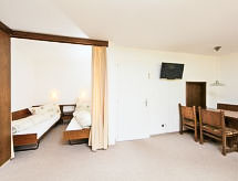 Residens "Ringstrasse (Utoring)". I området, 500 m fra sentrum, 20 m fra skiområdet. I hbrukt: bar, oppholdsrom, bordtennis, lekerom, heis, sykkelrom, skirom, sentralvarme, vaskemaskin, tørketrommel (ekstra). Rundstykkeservice og drikkevareservis. Tilgang med bil hele veien til hbrukt (fjellvei). Kjettinger nødvendige på vinteren, firhjulsdrift på bil anbefales. Parkering ved hbrukt, offentlig parkeringshus på 50 m, ekstra. Daglivarehandel, supermarked, restaurant, utendørs svømmebasseng 500 m, termalbad 300 m. Tennis 500 m, kabelbane, skisportenanlegg, skibakker 20 m, akebane, langrensløype 500 m, skøytebane 1 km. Velkjente skiområder: Leukerbad Torrent. Turstier Gemmi 1 km. The house is situated on a wooded southerly slope, directly next to the Torrenthorn cable lift. Only a short flight of stairs separates the house from the valley station. Parking in winter 35 SFR/week. Garage 70 SFR/week. Parking is free in summer, garage 35 SFR/week. Cleaning and linen payable locally for stays under 6 nights. Linen 21 SFR per person. Cleaning: studio 60 SFR to 70 SFR, 2 room apartment 85 SFr to 90 Sfr, 3 room apartment 115 SFR. Dette fjellområdet er hjem for mange trekkfugler. I regionen Leukerbad er det en skøytebane, hvor du kan nyte turen på skidene. Se fram til en uforglemmelig skiferie i vintersportregionen på Leukerbad. Opplev bevegelsen i snøen, hastigheten på ski. Bare lev lidenskapen for vintersport. Snøparker for snowboardåkere tiltrekker seg blant annet nye utfordringer, variasjoner og snowboardmoro hver dag. Med en slede følger i umiddelbar nærhet den første adrenalinrushen. Toboggan entusiaster haster mot en uforglemmelig nedstigning. Her finner du din tennisspiller for neste tenniskamp. Steder er tilgjengelige.Interior
