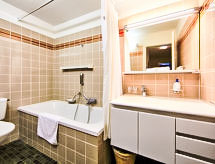 2 rom leilighet 69 m2 i 4th etasje. Komfortabelt møbler: stor stue/spisestue med, 2 skapsenger og kabel-TV (flatskjerms TV). 1 rom med 2 senger. Kjøkken (stekeovn, oppvaskmaskin, elektrisk kaffemaskin, Internet(Nespresso), ekstra). Bad/WC, sep. WC. Balkong. Terrassemøbler. Utsikt av fjellene og dalen. Fasiliteter: Internett (trådløs LAN [WLAN], gratis). Vennligst merk: røykfri bolig. Bad i huset. En balkong er tilgjengelig. Huset er også utstyrt med et pingpongbord.- Kjennetegn ved boligen